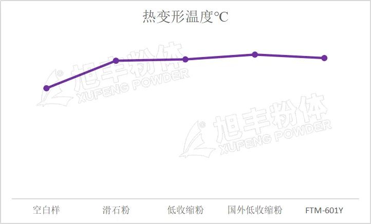 從上圖可以看出,F(xiàn)TM-601Y較添加滑石粉體系,具有較高的熱變形溫度,同時相對純PP樹脂來說,熱變形溫度也有大幅度的提升,這說明FTM-601Y在PP中具有良好的耐熱穩(wěn)定性。