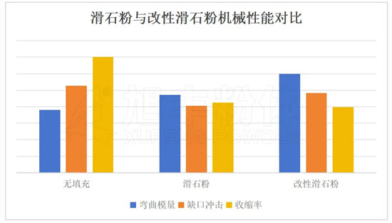 1、滑石粉與改性滑石粉機(jī)械性能對(duì)比