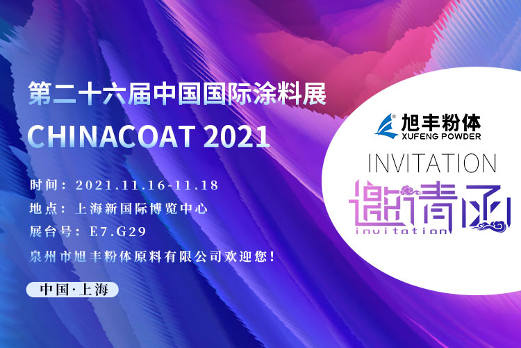 更多防腐涂料應(yīng)用信息與產(chǎn)品推薦,歡迎來電咨詢,另外旭豐粉體將出席第二十六屆中國(上海)國際涂料展,屆時(shí)誠邀您蒞臨我司展臺參觀交流指導(dǎo)!
